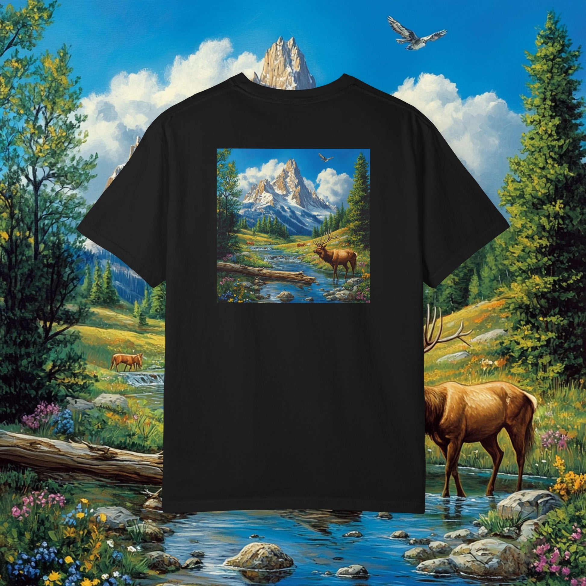 Experience the serene beauty of the majestic Western landscape with this Comfort Colors T-Shirt. Perfect for nature lovers and outdoor enthusiasts, this vintage Old West apparel brings a sense of tranquility and adventure to your wardrobe. Ideal for casual wear or as a statement piece, this Mountain Elk shirt is a must-have for anyone who appreciates the beauty of the great outdoors. Perfect for gifting on Father's Day, birthdays, or any occasion where a touch of nature is desired. Product features - Available in sizes S to 4XL for the perfect fit - Double-needle stitching for durability - Garment-dyed fabric for a soft texture - Made with 100% US cotton for long-lasting comfort - Perfect for nature lovers and outdoor enthusiasts Care instructions - Machine wash: cold (max 30C or 90F) - Do not bleach - Tumble dry: low heat - Iron, steam or dry: low heat - Do not dryclean