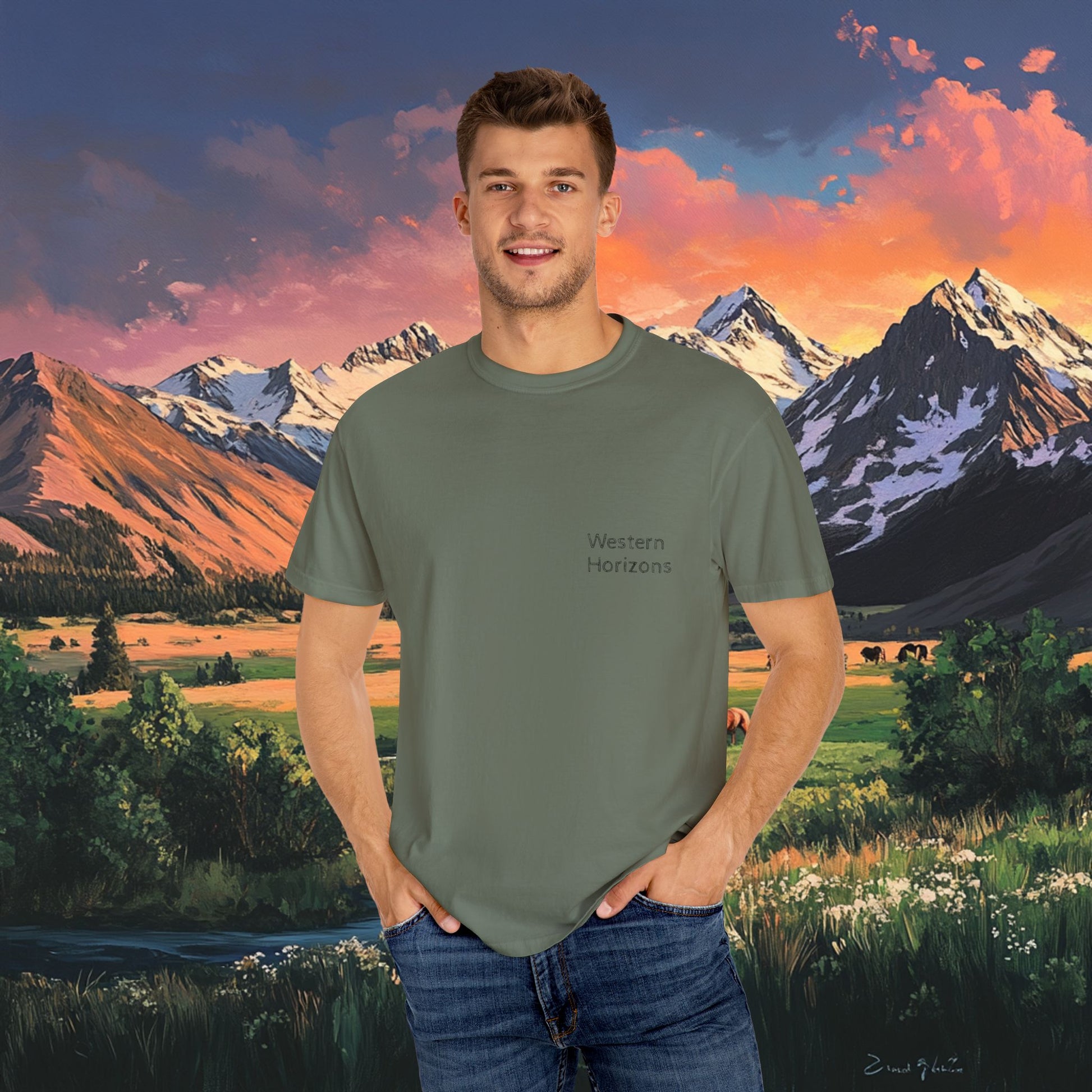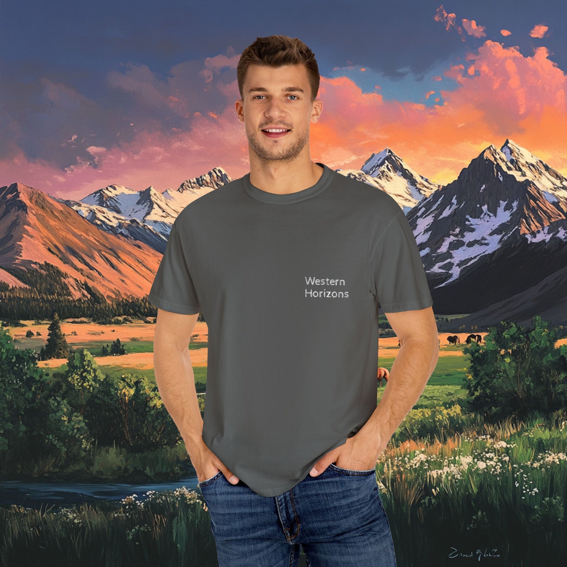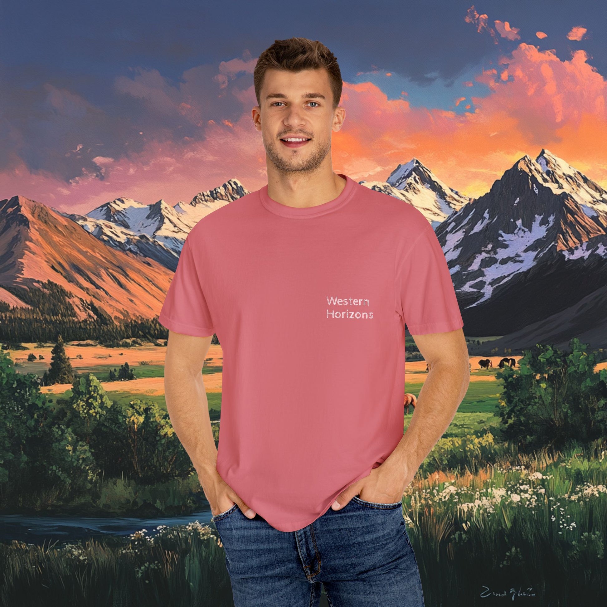 Elevate your wardrobe with this versatile Unisex T-shirt. With a stunning graphic design that captures the beauty of nature, it embodies a relaxed and adventurous spirit. Perfect for casual outings, art exhibitions, or cozy days at home, this T-shirt offers comfort without sacrificing style. Ideal for outdoor enthusiasts, artists, and anyone who appreciates the great outdoors. It's a thoughtful gift for birthdays, holidays, or just to brighten someone’s day. Product features - Available in sizes S to 4XL for a perfect fit. - Durable double-needle stitching on all seams. - Seamless tubular design reduces fabric waste and enhances aesthetics. - Garment-dyed for a soft, rich texture and color. - 100% ethically sourced US cotton ensures lasting comfort. Care instructions - Machine wash: cold (max 30C or 90F) - Do not bleach - Tumble dry: low heat - Iron, steam or dry: low heat - Do not dryclean