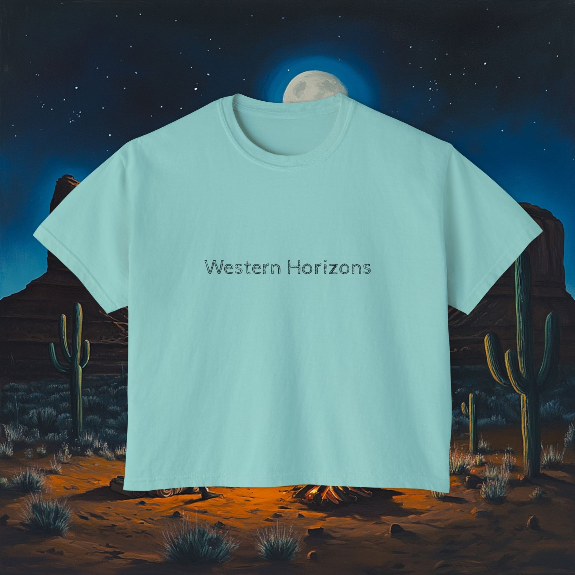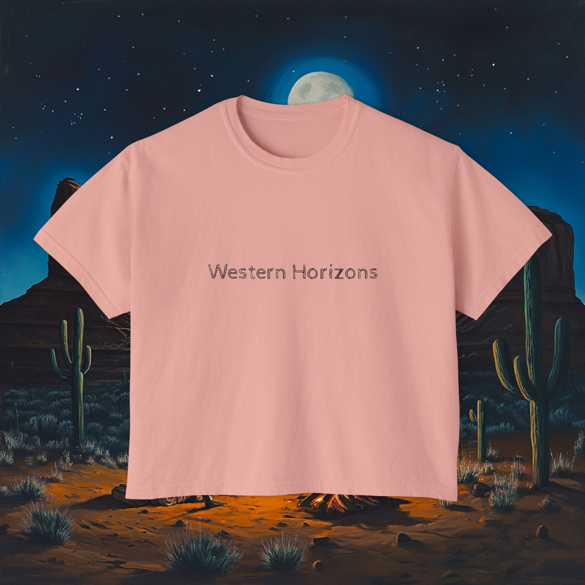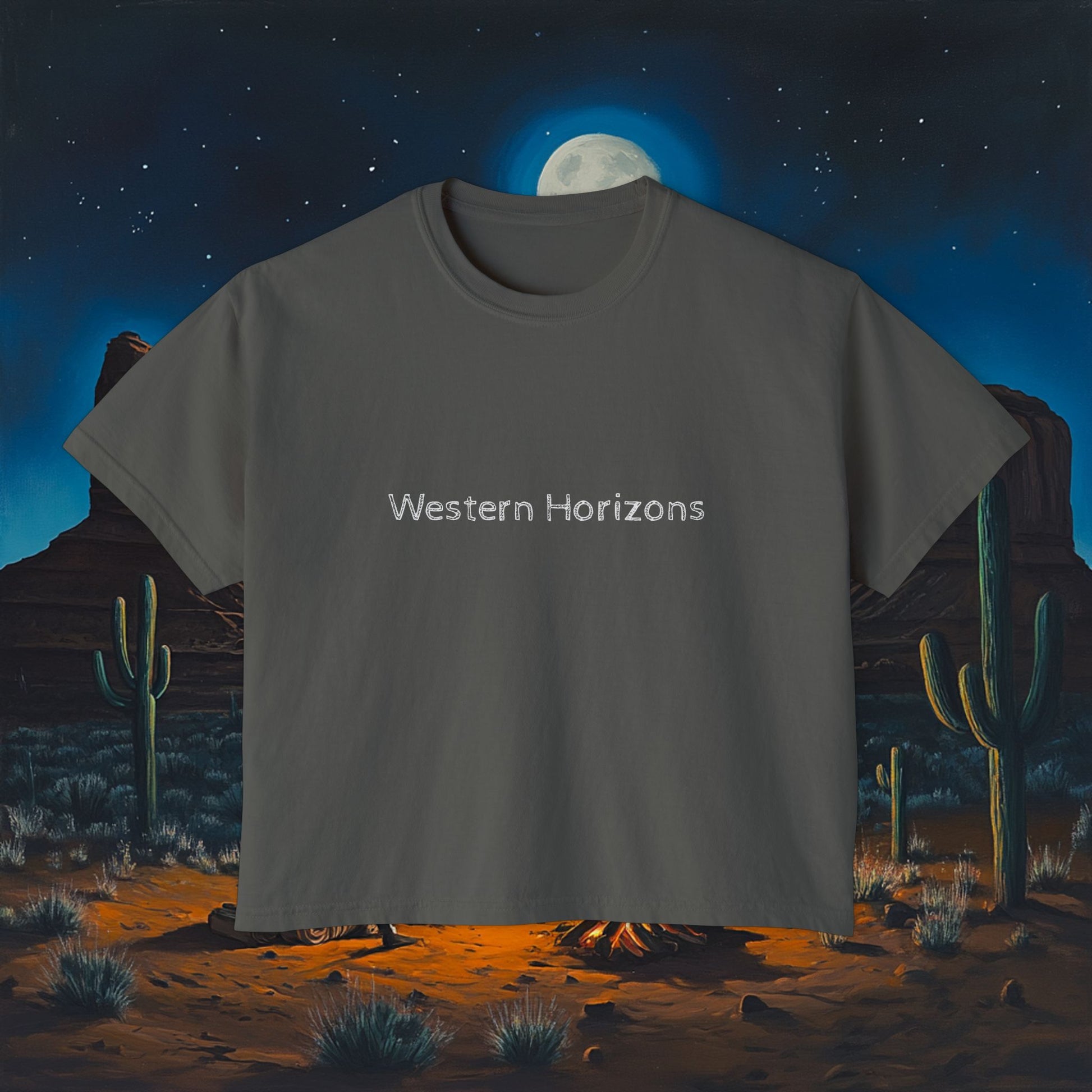 Moonlit Cowboy Campfire Boxy Tee