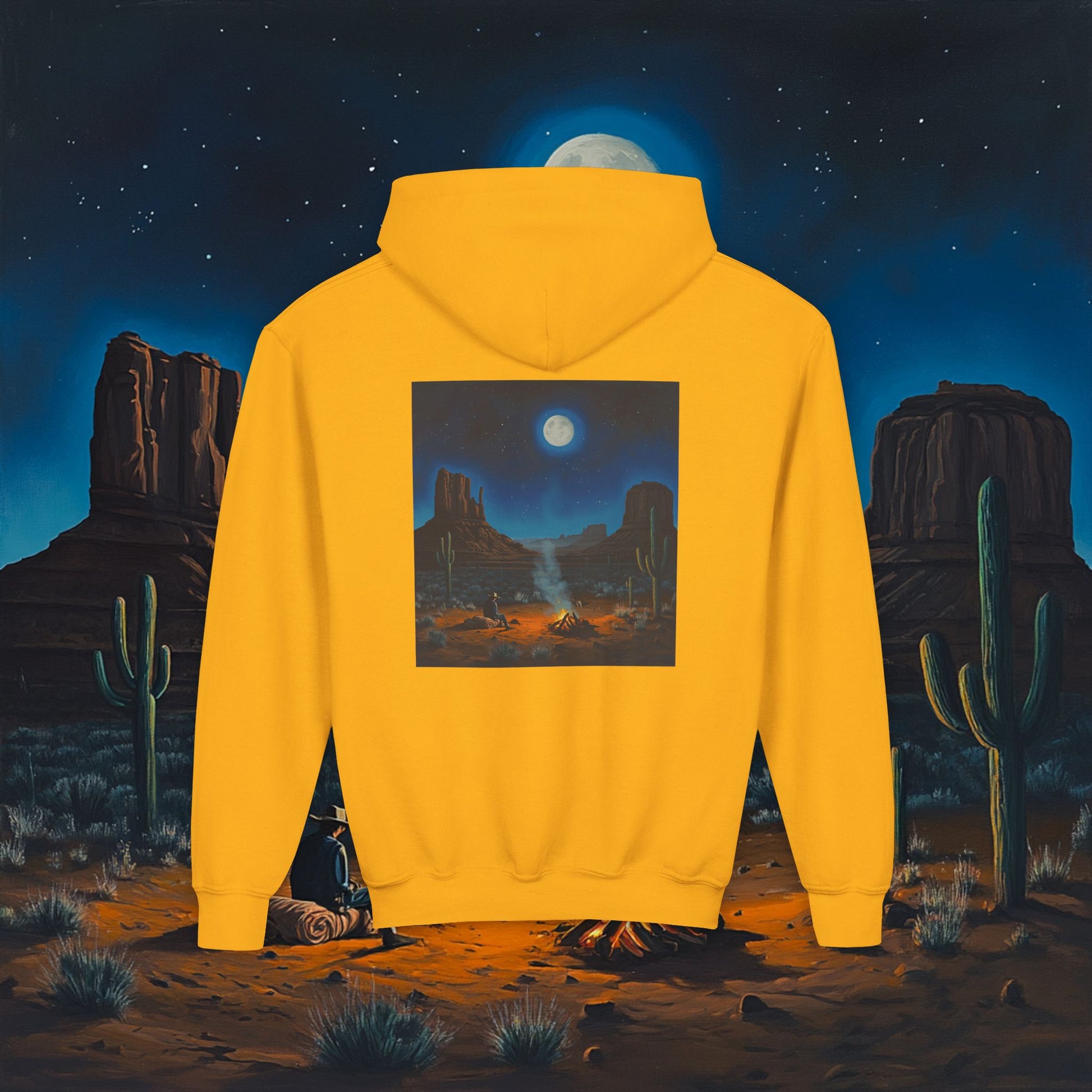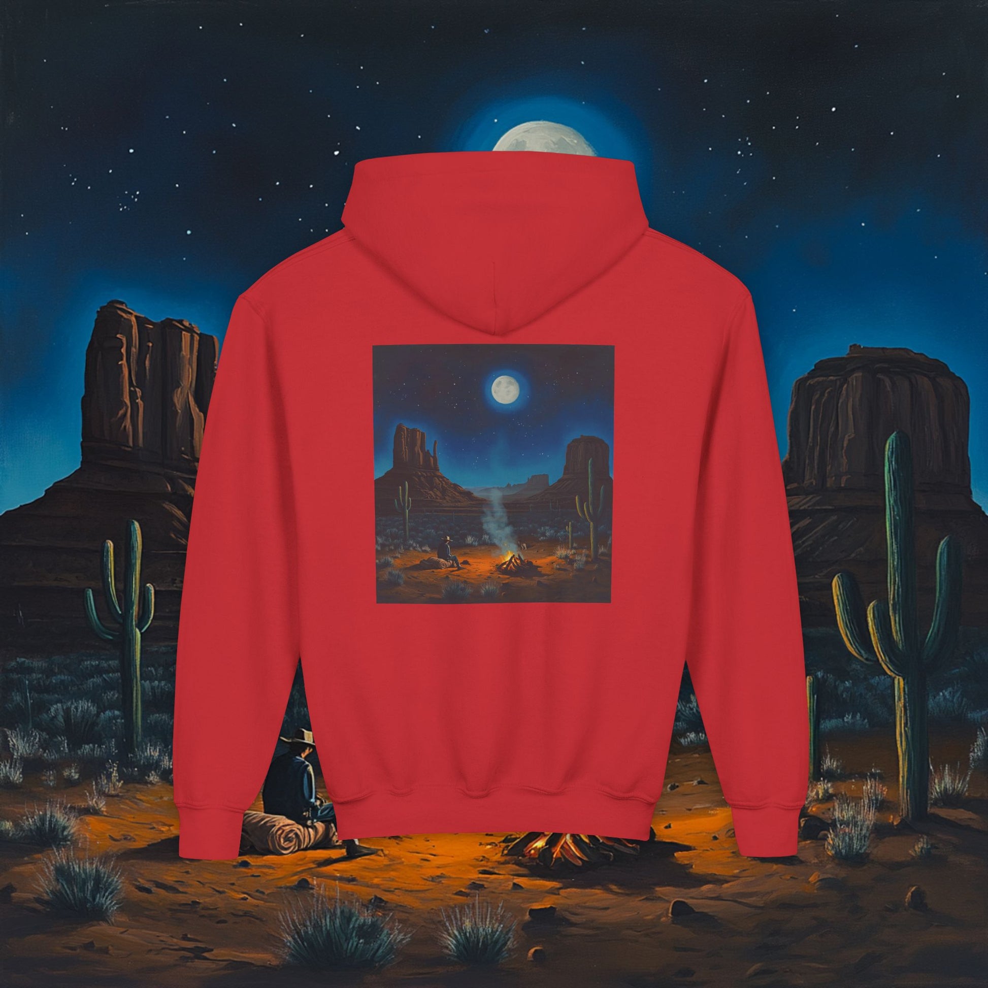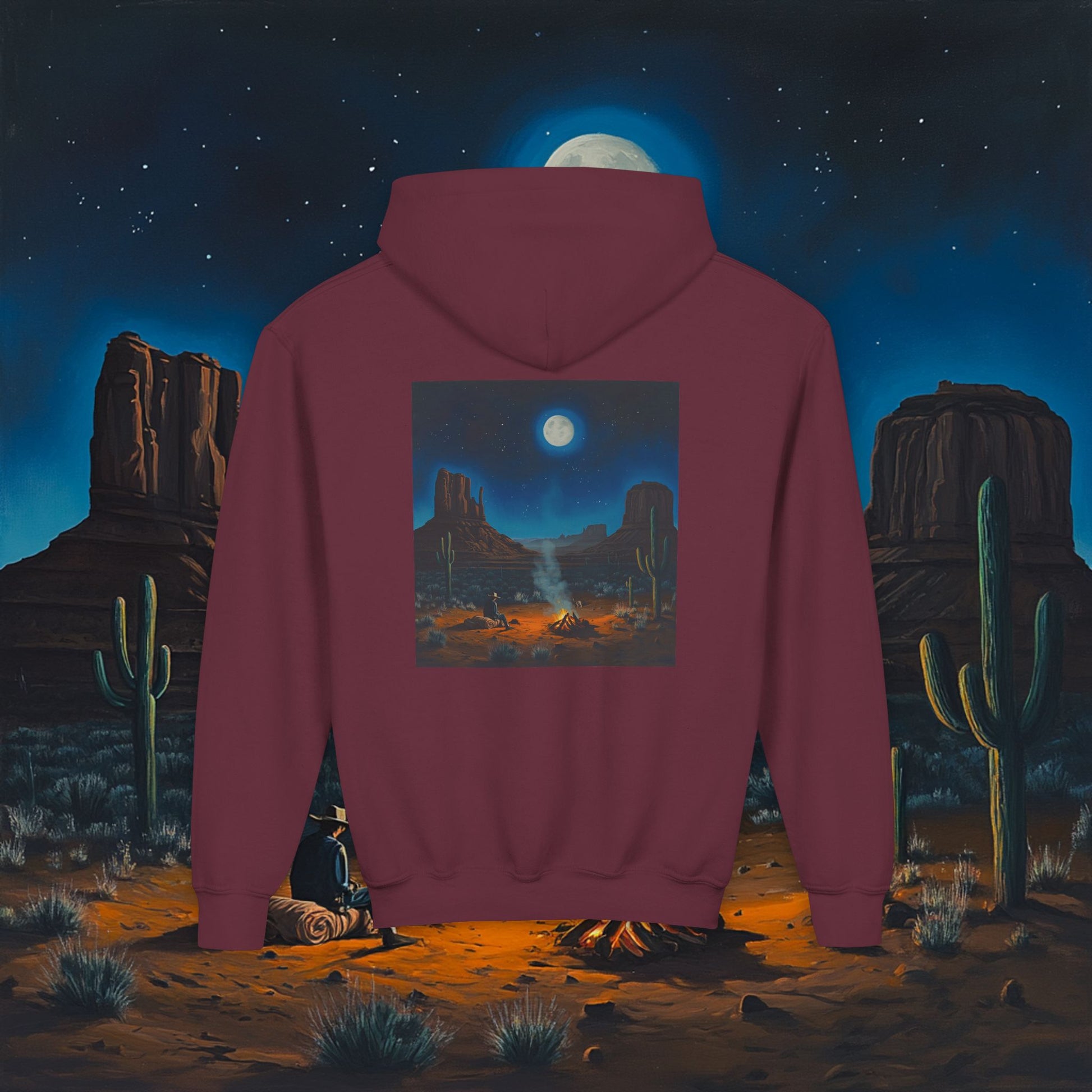 Moonlit Cowboy Campfire Kids Hoodie