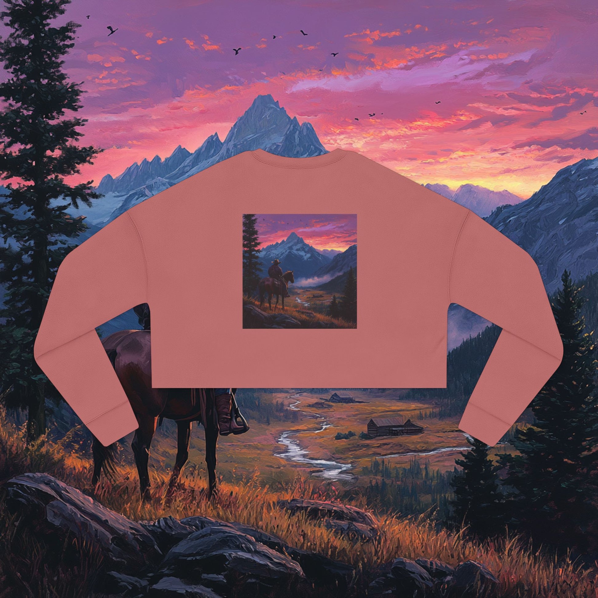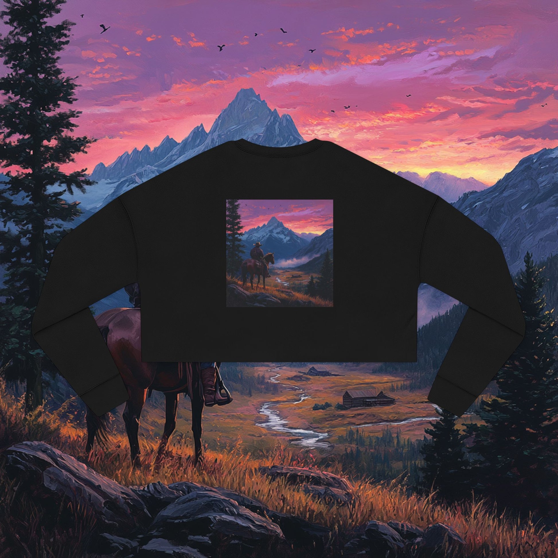 Elevate your casual wardrobe with this Women's Cropped Sweatshirt, ideal for the modern, free-spirited woman. The unique design captures breathtaking western landscapes, invoking a sense of adventure and comfort. Perfect for leisurely weekends, this sweatshirt pairs beautifully with high-waisted jeans or skirts, making it an essential piece for cozy outings. Designed for those who appreciate nature's beauty, it's a great gift for friends and family who love outdoor activities or simply want to express their style. This versatile sweatshirt is especially fitting for cozy fall gatherings, chilly nights around the campfire, or as a thoughtful present for birthdays and holidays.