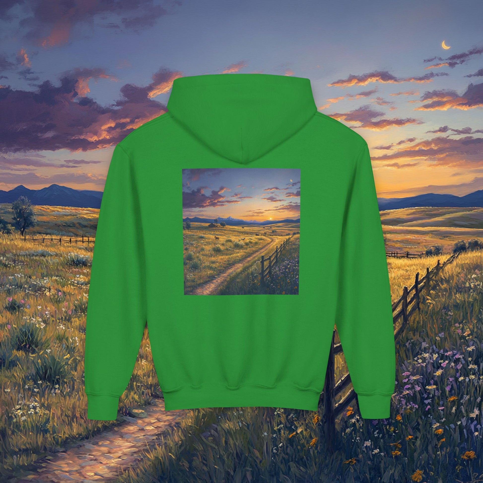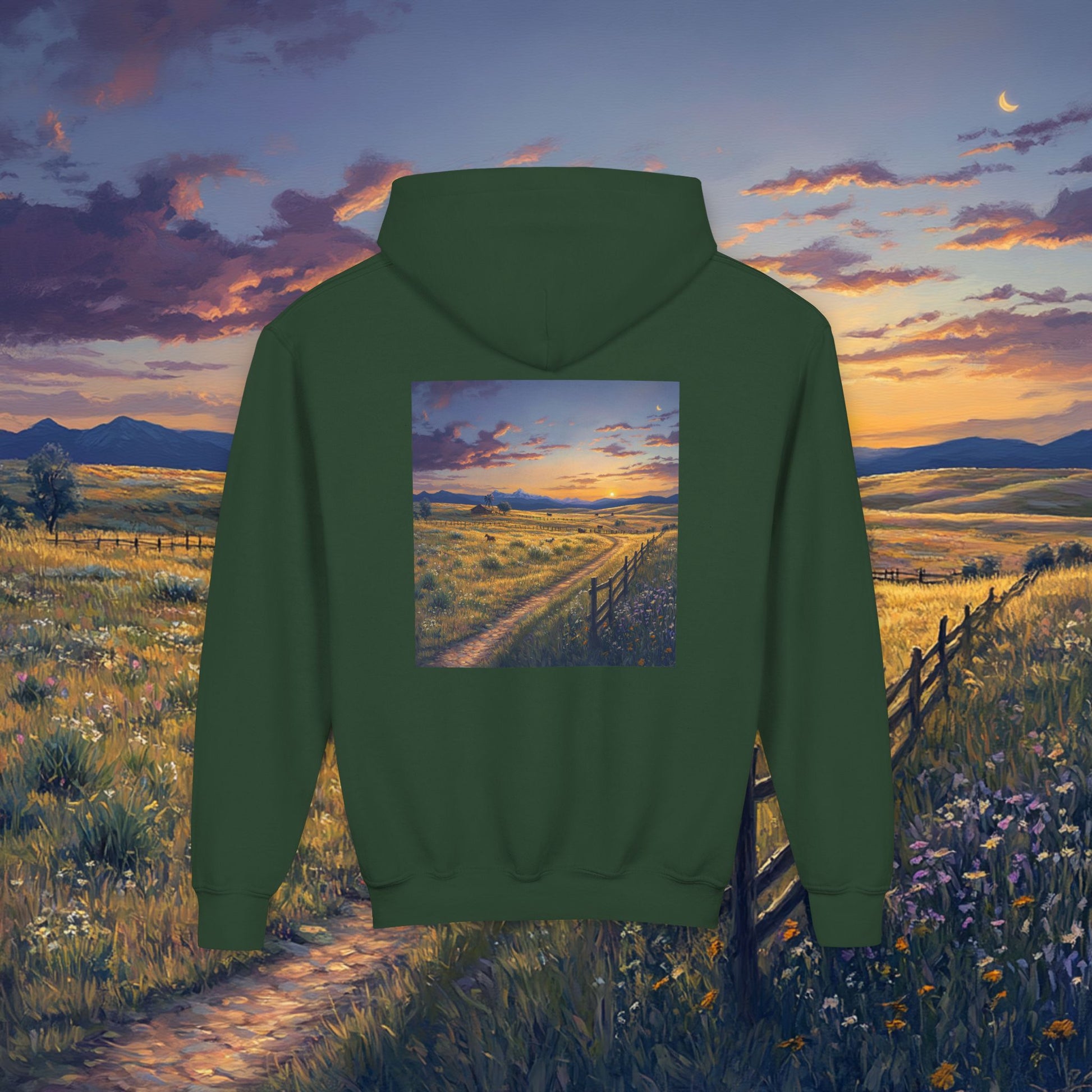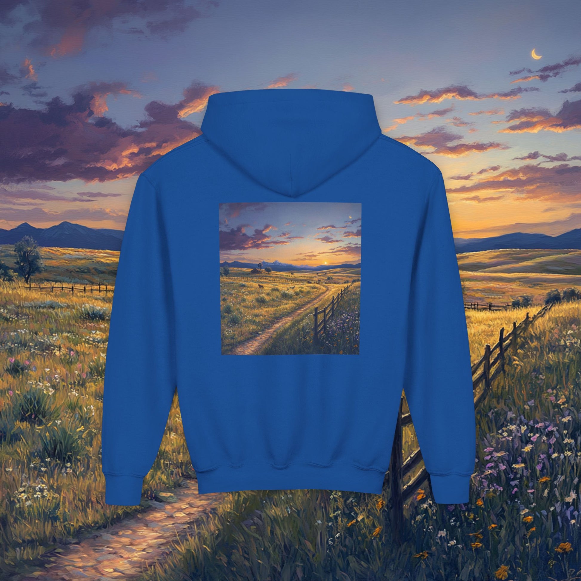 Elevate your comfort with this Youth Heavy Blend Hooded Sweatshirt, perfect for young adventurers and dreamers alike. Its soft, cozy fabric envelops you in warmth, making it an ideal companion for chilly days or cozy nights in. Imagine your child exploring outdoors, wrapped in this sweatshirt, feeling both relaxed and stylish. The eye-catching design, featuring a beautiful sunset landscape, will inspire a sense of wonder and outdoor adventure. Perfect for back-to-school wear, camping trips, or simply lounging at home. This piece makes a wonderful gift for birthdays, holidays, or any celebration where comfort meets inspiration. Designed for children but loved by all ages, it's a staple piece for their wardrobe.