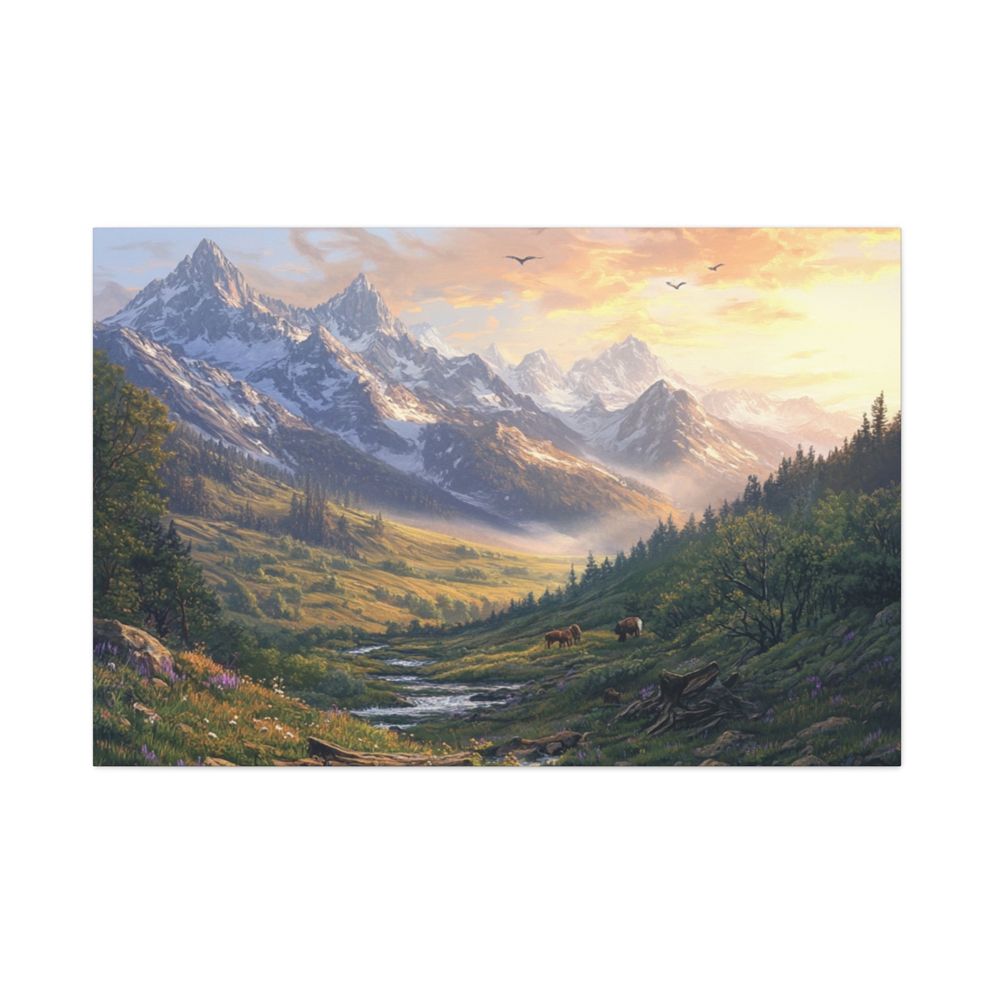 Immerse yourself in the breathtaking beauty of a Rocky Mountain valley with this stunning canvas print. The serene landscape, with vast meadows, winding rivers, and snow-capped peaks, radiates a sense of peace and tranquility. Perfect for nature lovers and those seeking to bring the outdoors into their living space. Ideal for gifting during holidays like Christmas, birthdays, or housewarmings.