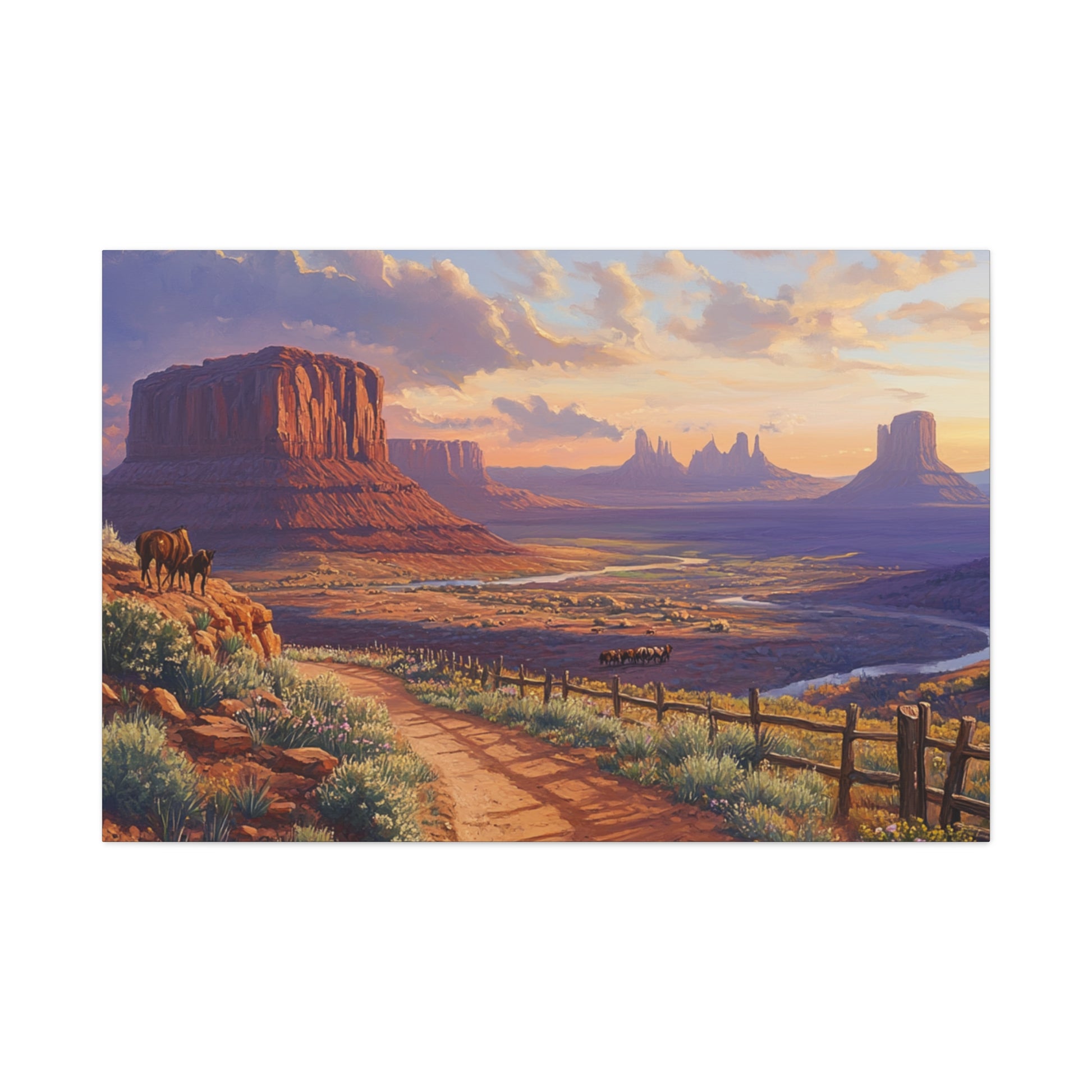 Capture the untouched beauty of the American frontier with this breathtaking Western landscape canvas print. The warm and inviting colors evoke a sense of solitude and freedom, perfect for adding a touch of nature to any room. Ideal for those who appreciate the beauty of nature and the tranquility of open spaces. Relevant for home decor, nature lovers, and those seeking a sense of peace and serenity. Perfect for gifting on occasions like birthdays, housewarmings, or as a special holiday present.
