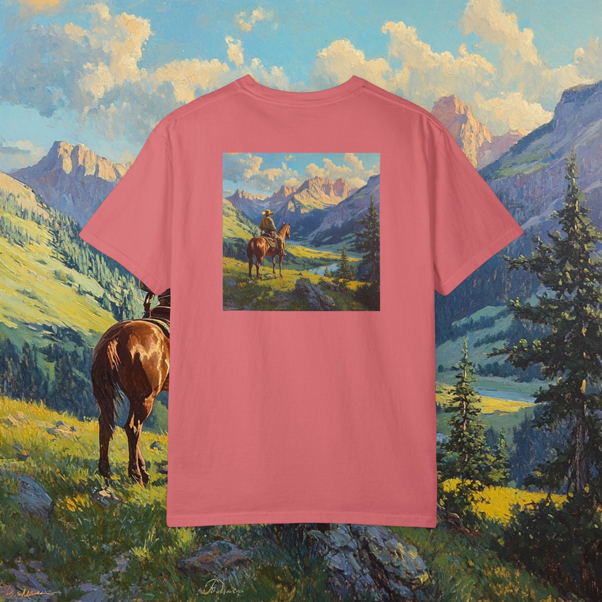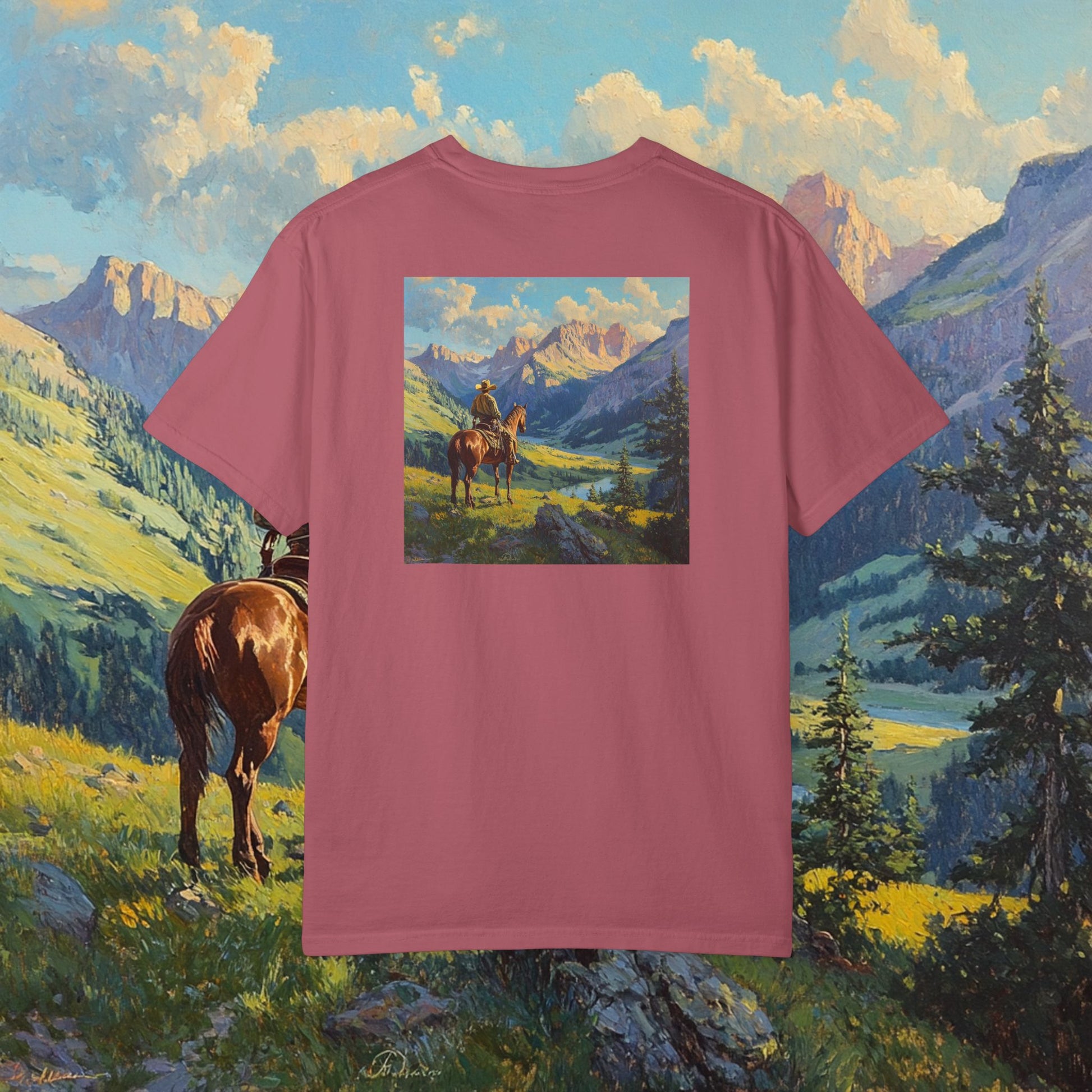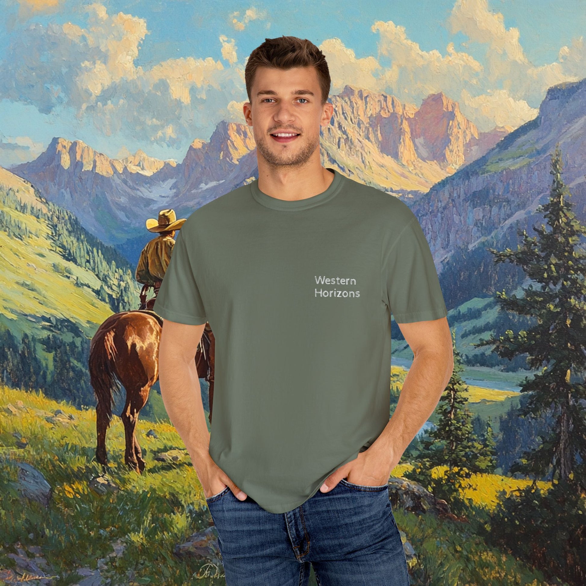 Capture the rugged beauty of the Wild West with this Comfort Colors T-shirt. Featuring a stunning Rocky Mountains Western Landscape, this tee exudes a sense of adventure and freedom. Perfect for those who love the outdoors, western culture, or simply want to express their love for the American frontier. Ideal for casual wear or as a statement piece for Western-themed events, rodeos, or cowboy gatherings. Product features - Available in sizes S to 4XL for a perfect fit - Double-needle stitching for durability - Garment-dyed fabric for a soft color and texture - Made with 100% US cotton for long-lasting comfort - Great for outdoor enthusiasts or Western culture enthusiasts Care instructions - Machine wash: cold (max 30C or 90F) - Do not bleach - Tumble dry: low heat - Iron, steam or dry: low heat - Do not dryclean