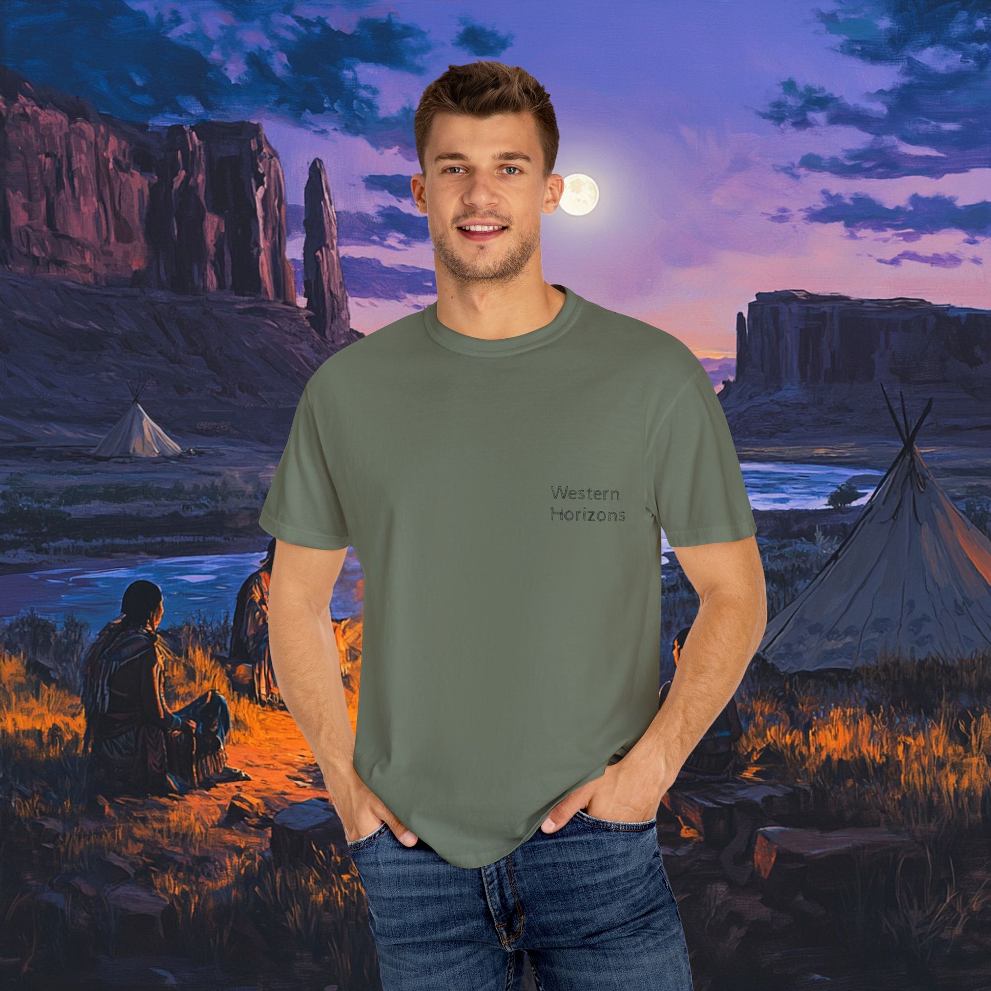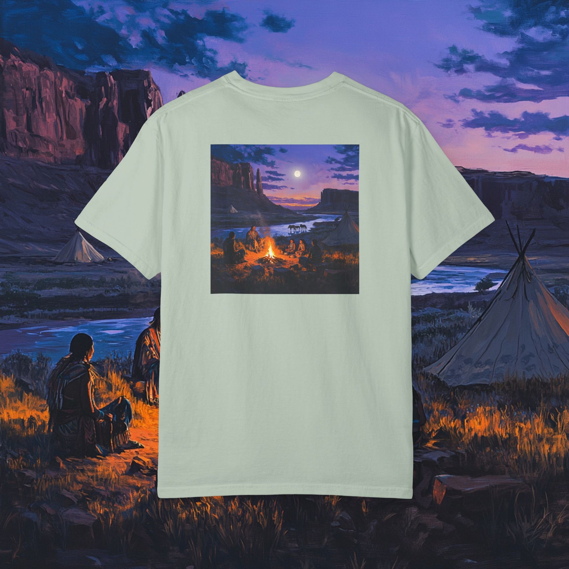 This Comfort Colors T-Shirt features a campfire design and Southwest landscape, giving off a cozy and adventurous vibe. Perfect for those interested in tribal aesthetics and outdoor enthusiasts. Ideal for wearing during camping trips, hiking excursions, or outdoor gatherings. Great for Native American Heritage Month, camping holidays, and outdoor festivals. Product features - Available in sizes S to 4XL - Double-needle stitching for durability - Garment-dyed fabric for softness - Made with 100% US cotton - Relaxed fit and crew neckline for comfort and style Care instructions - Machine wash: cold (max 30C or 90F) - Do not bleach - Tumble dry: low heat - Iron, steam or dry: low heat - Do not dryclean