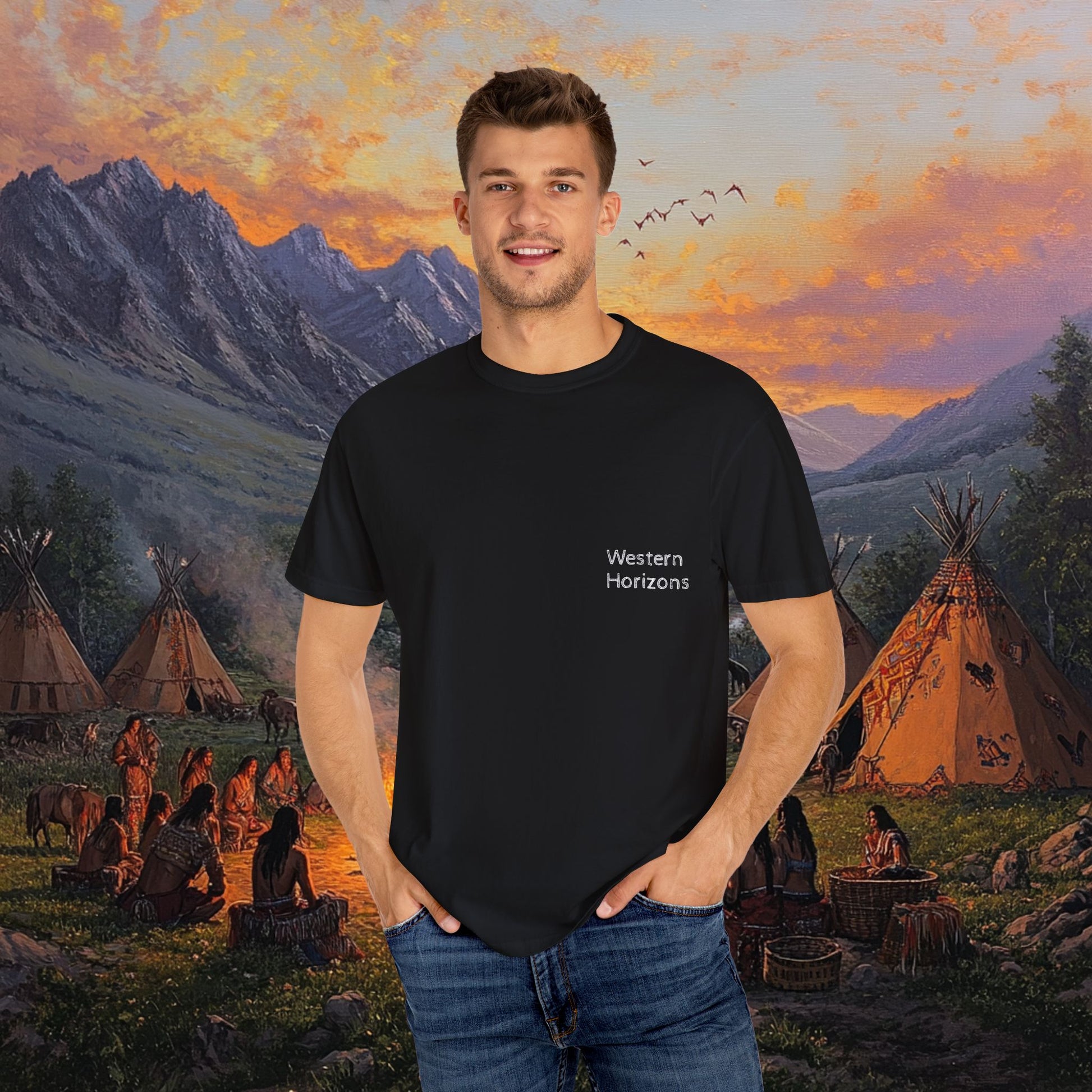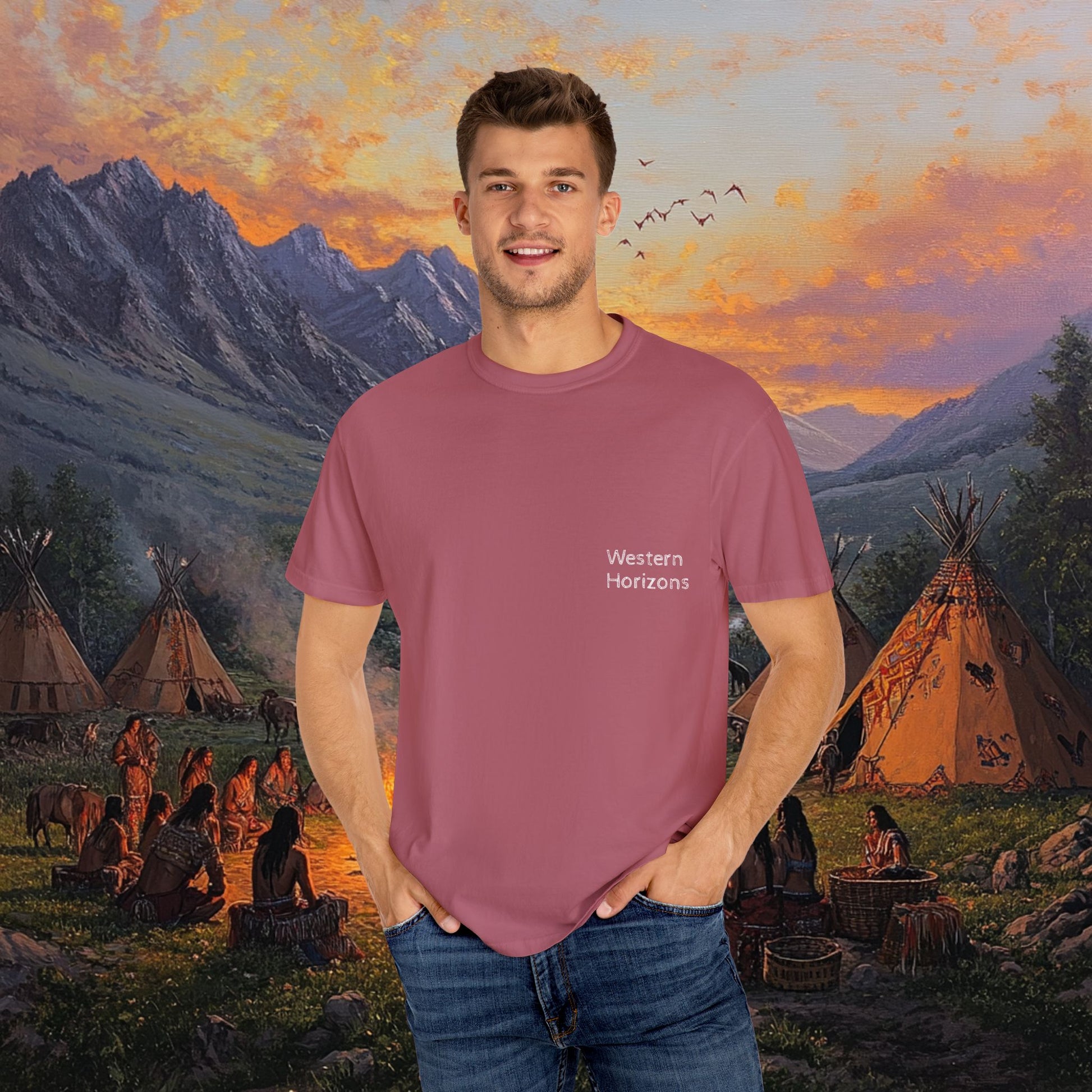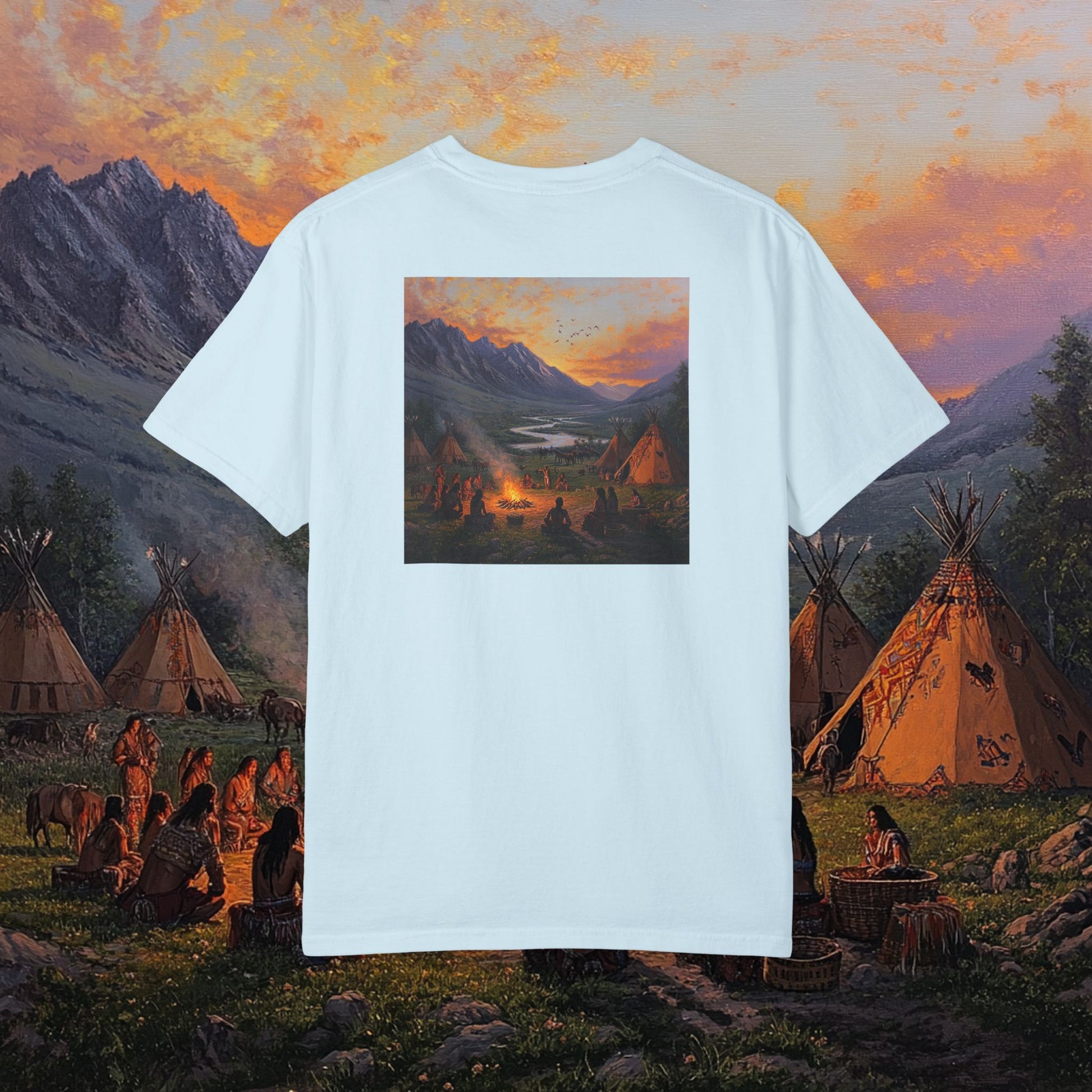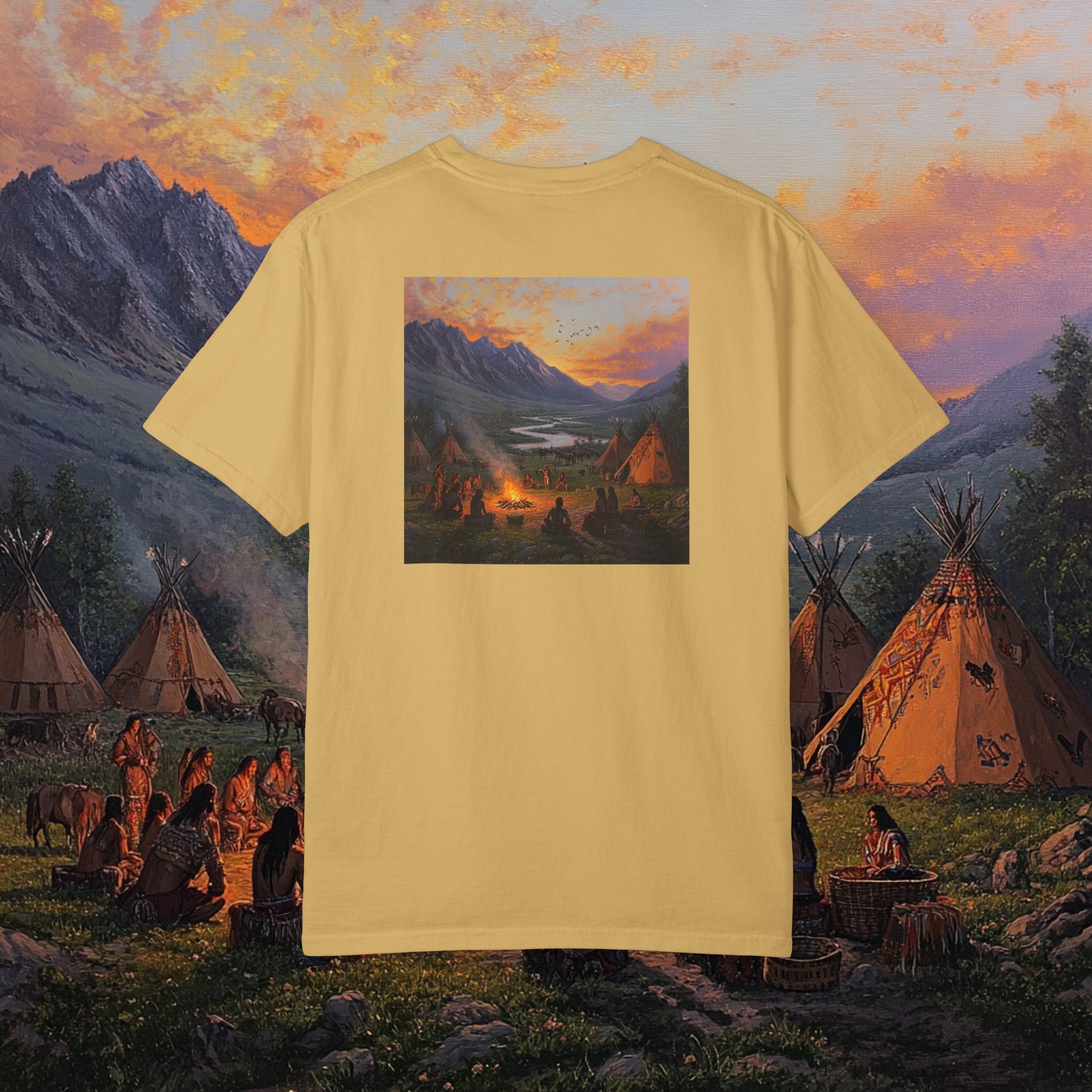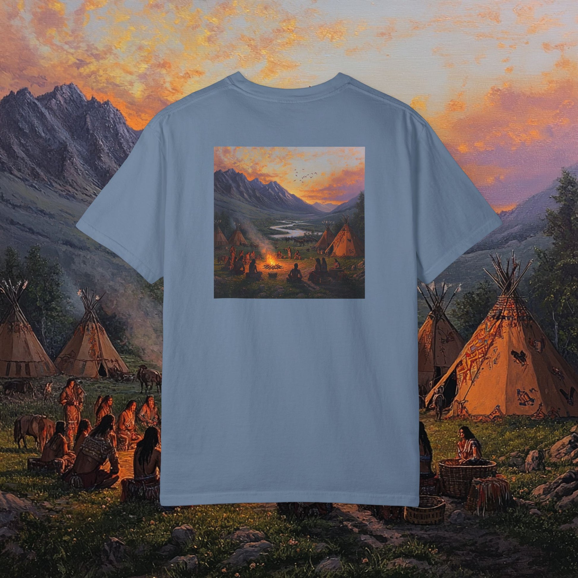 This Comfort Colors T-Shirt features a stunning design of a Native American village at sunset, perfect for those who appreciate tribal life and culture. The garment-dyed fabric provides a soft color and texture, while the double-needle stitching ensures durability. Ideal for adults who enjoy casual and semi-formal settings with its relaxed fit and classic crew neckline. Suitable for cultural events, Native American heritage celebrations, and those interested in indigenous traditions. Product features - Available in multiple sizes from S to 4XL - Double-needle stitching for durability - Garment-dyed fabric for softness - Made with 100% US cotton for comfort - Relaxed fit and pre-shrunk fabric for consistent sizing Care instructions - Machine wash: cold (max 30C or 90F) - Do not bleach - Tumble dry: low heat - Iron, steam or dry: low heat - Do not dryclean